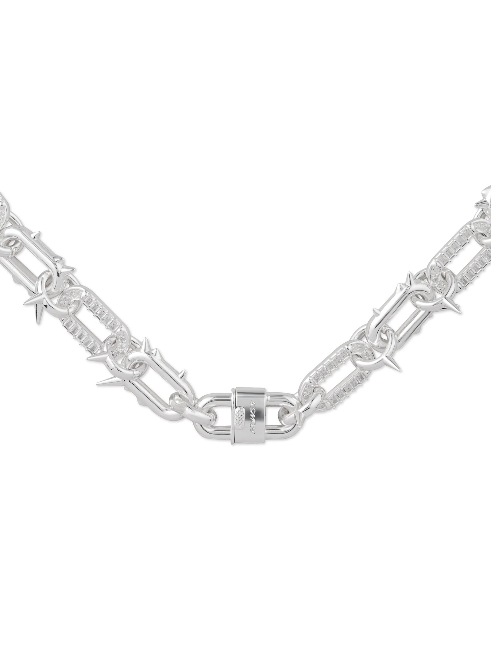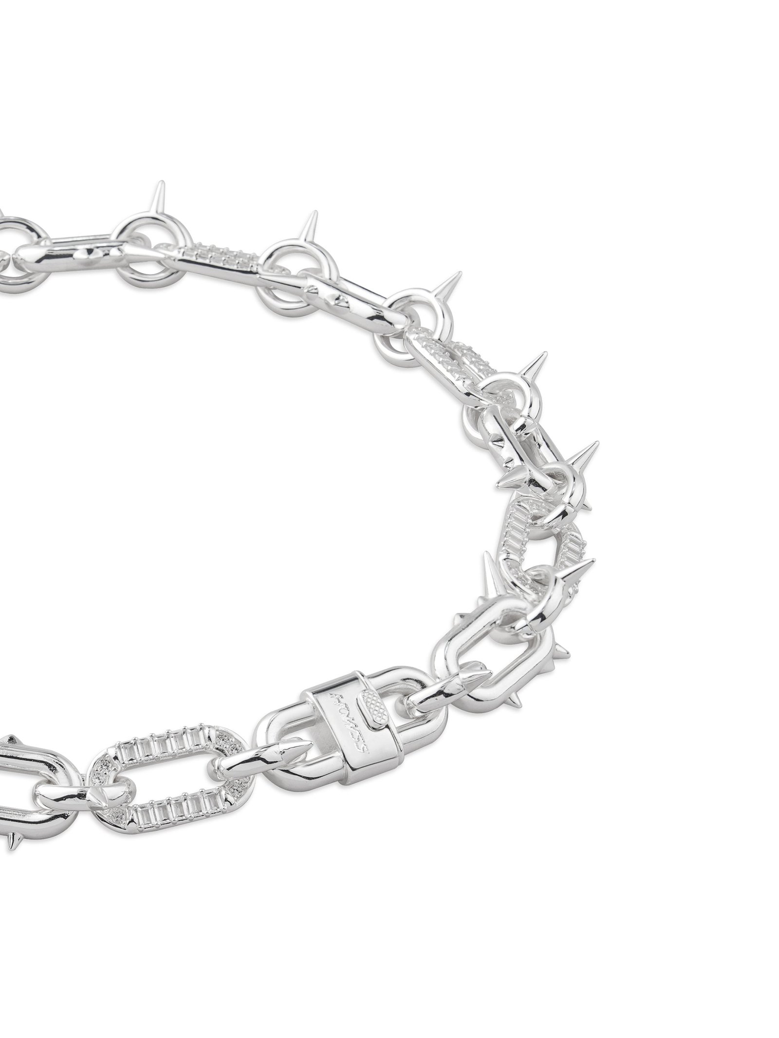 Built from silver-plated copper. each link is precision-cast for sharpness and shine. Embedded zircon stones hit with clear contrast. while the spike elements add a kinetic edge. Polished smooth. light on weight. and built for daily fire.