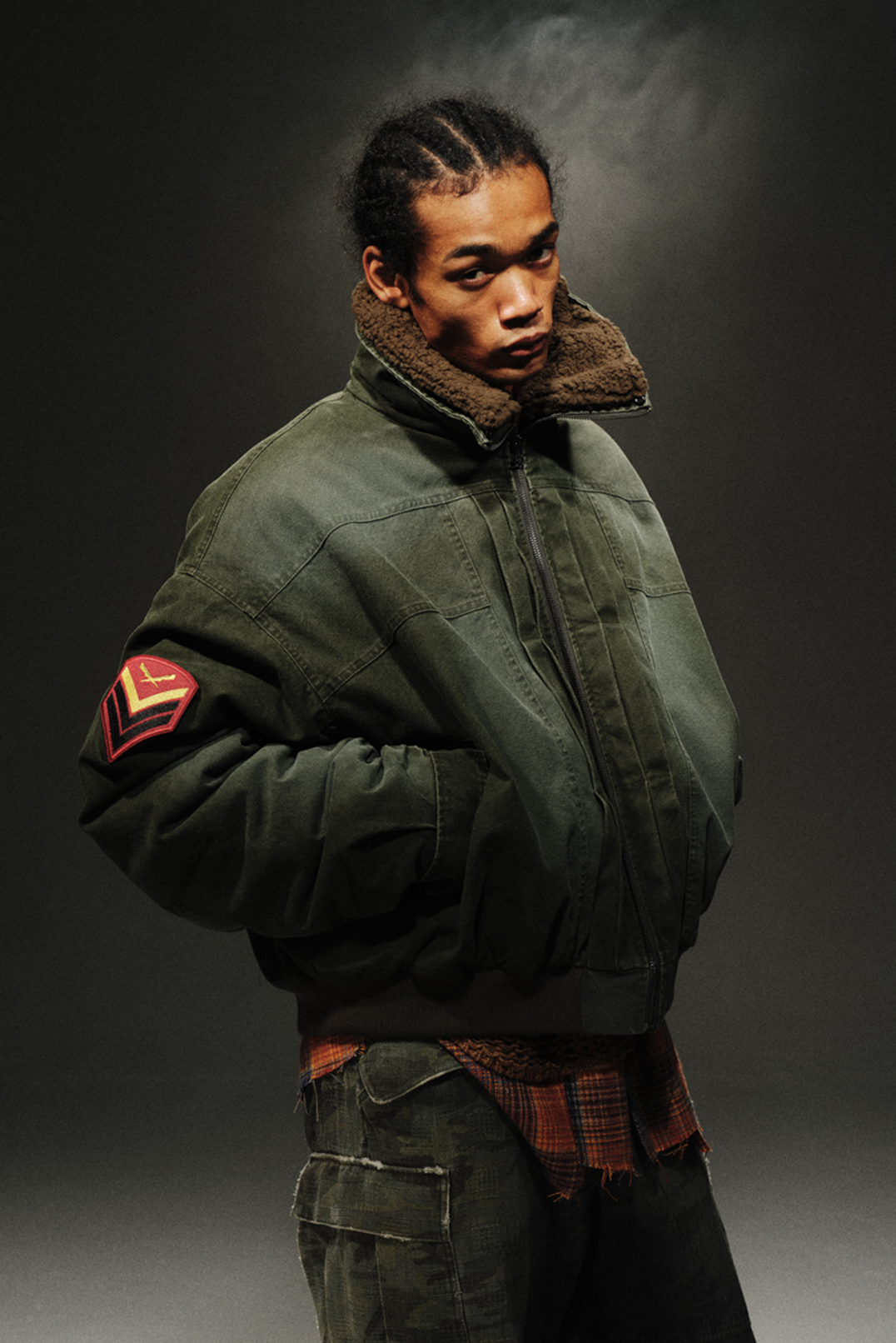 The overall silhouette is inspired by vintage military aesthetics. mimicking the look and feel of classic U.S. army surplus. The interior is padded with 350g pearl cotton. providing excellent warmth and making it a reliable choice for winter.