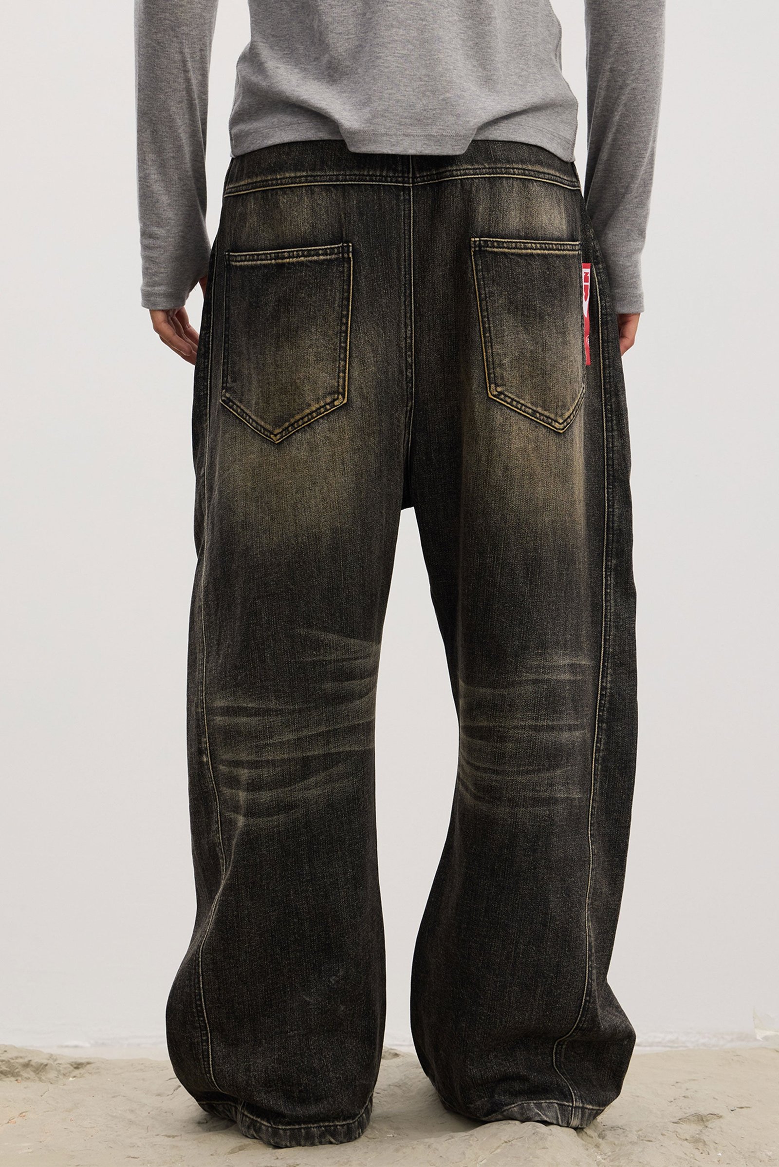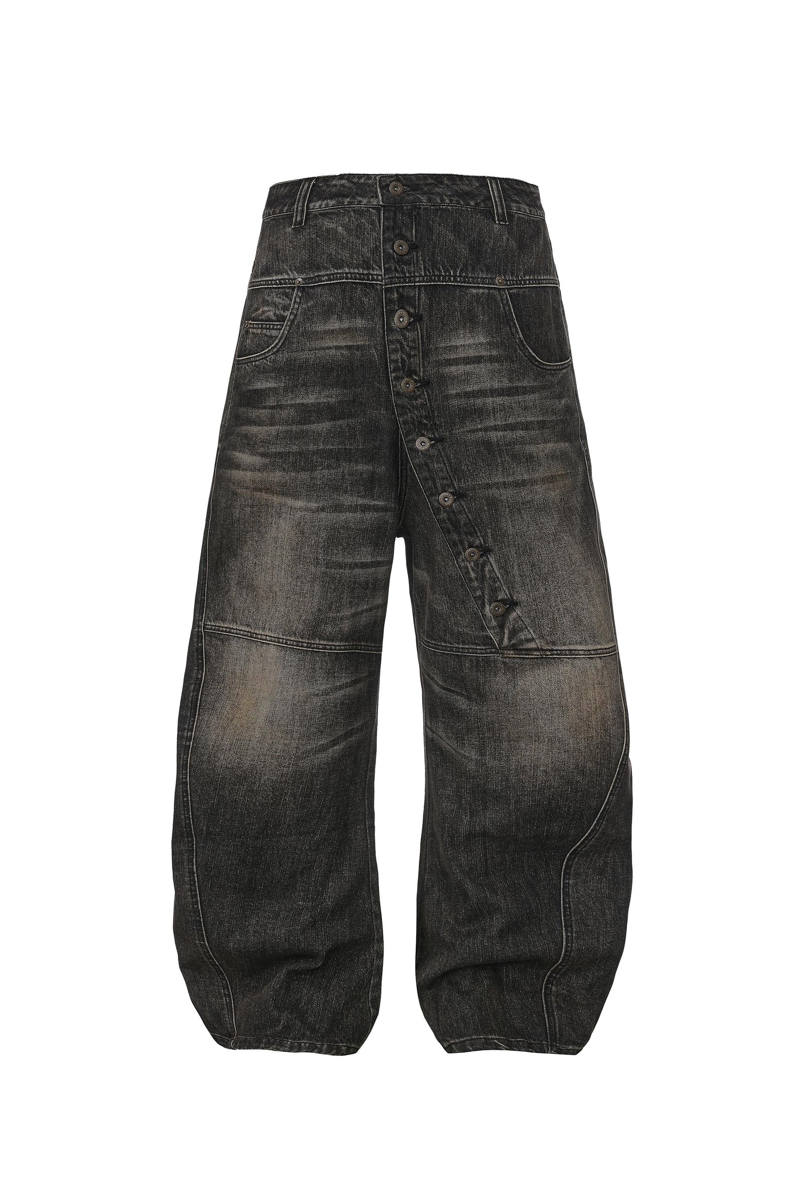 These long-button washed denim jeans feature a bold full-button front that highlights personal attitude and adds a playful. edgy style to your fits. The relaxed baggy cut offers effortless comfort and pairs well with any top. Washed with a fade-out process to reveal subtle multicolor textures and whisker details. they carry a strong vintage vibe. Whether you’re going for a streetwear edge or a laid-back look. they deliver statement style with ease.