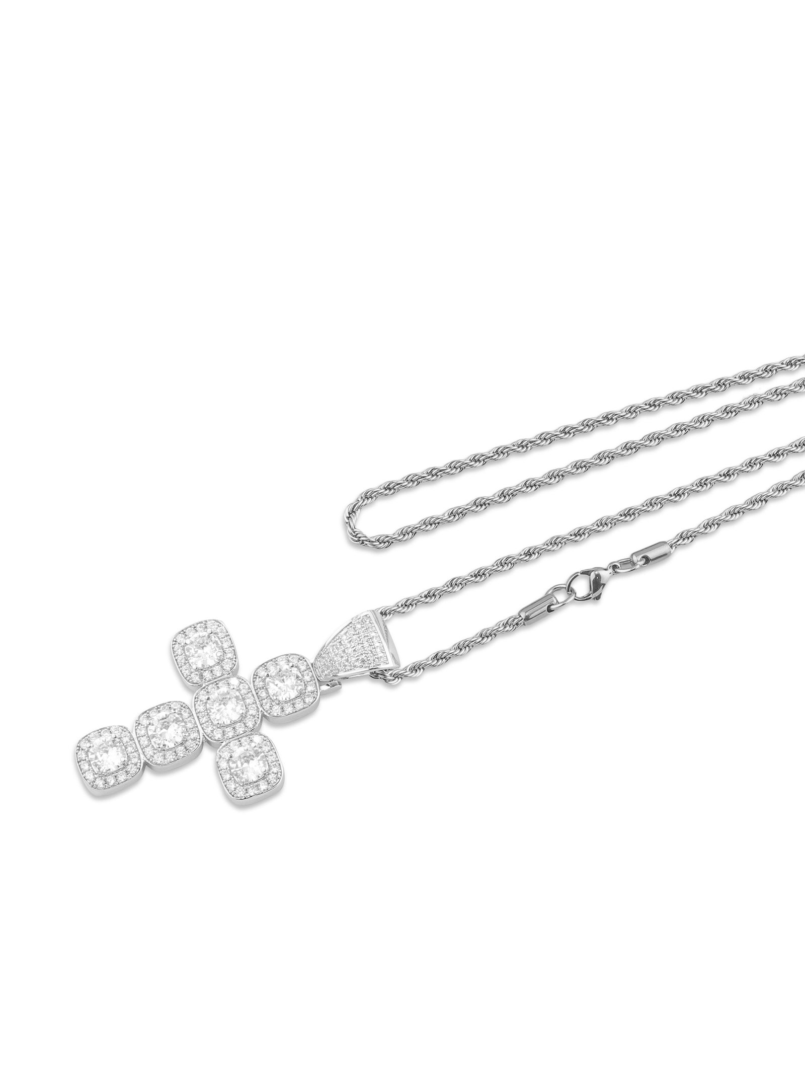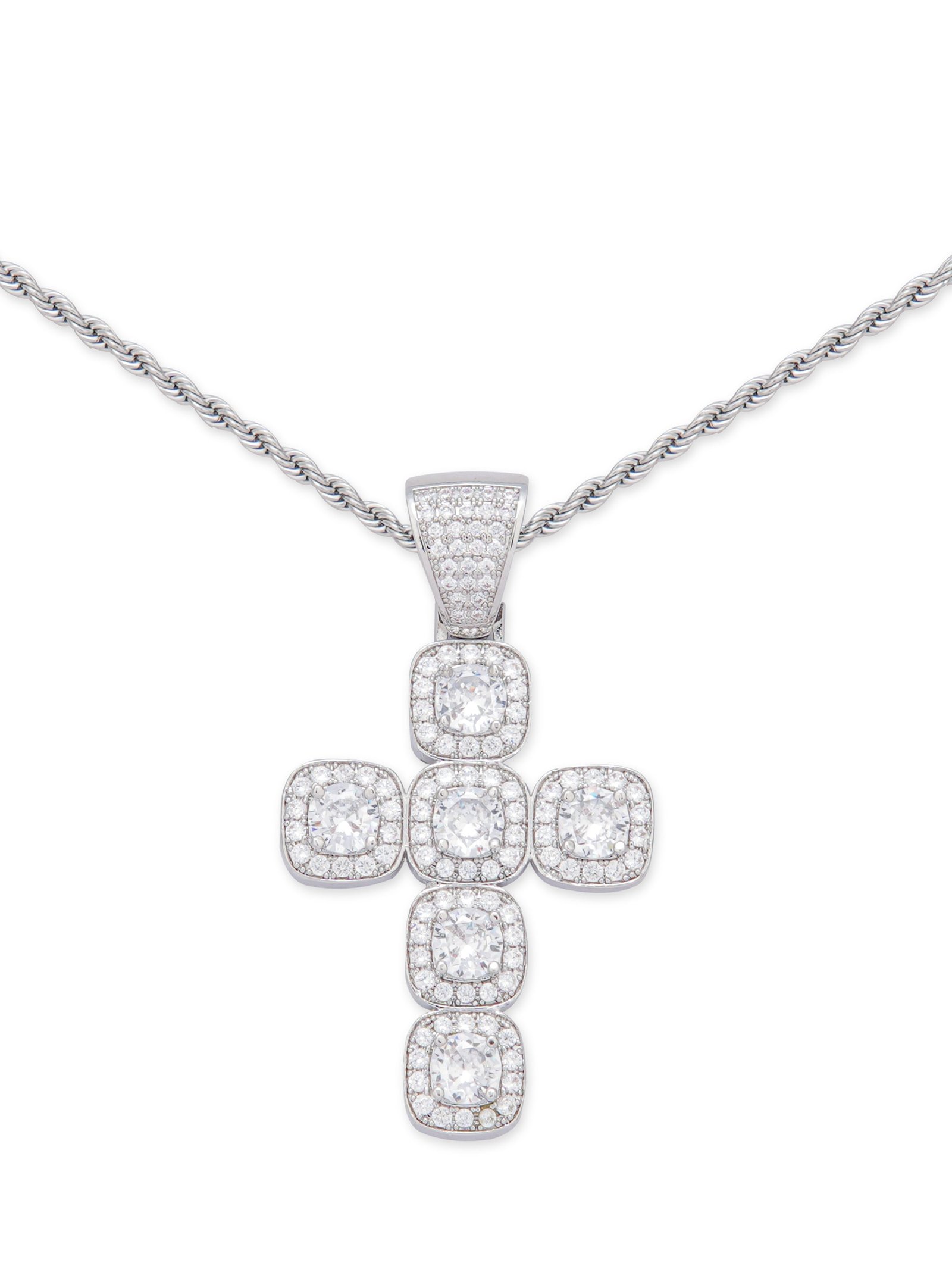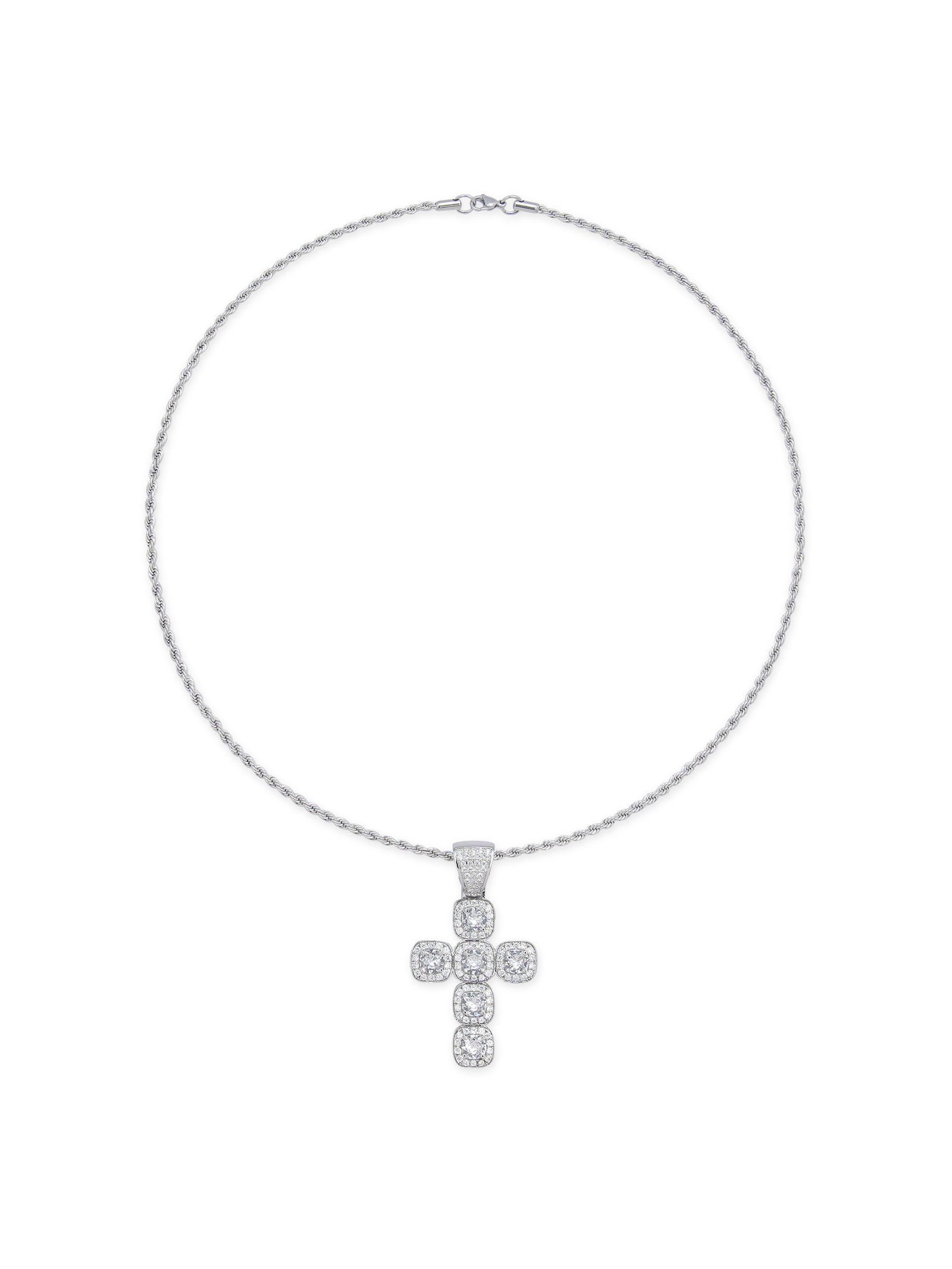 This bold pendant features a striking cross design and is set with sparkling zircons. The zircons exude a luxurious diamond-like luster. giving the piece a brilliant. high-end look. while the strong and durable metal ensures it will stand the test of time. It is resistant to rust. oxidation and daily wear. making it durable and maintenance-free.