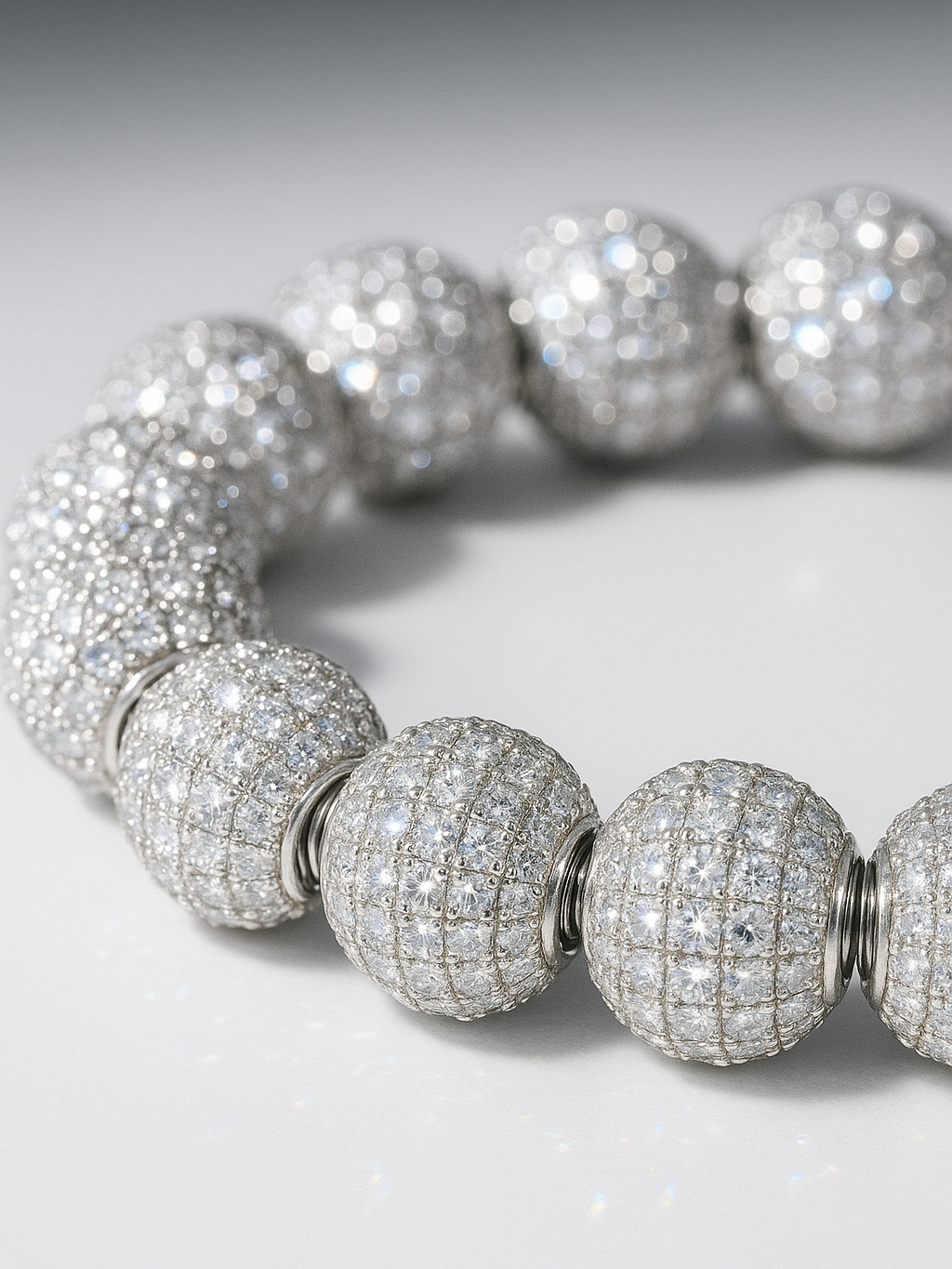 This bracelet is exclusively designed by HOWSS and is handcrafted from high-quality titanium steel. which is rust-proof. anti-oxidation. wear-resistant and maintenance-free.Each bead is carefully inlaid with transparent zircon by hand. creating a flowing light and shadow effect. with both visual impact and exquisite details. Every detail is carefully crafted. highlighting the exquisite street luxury.