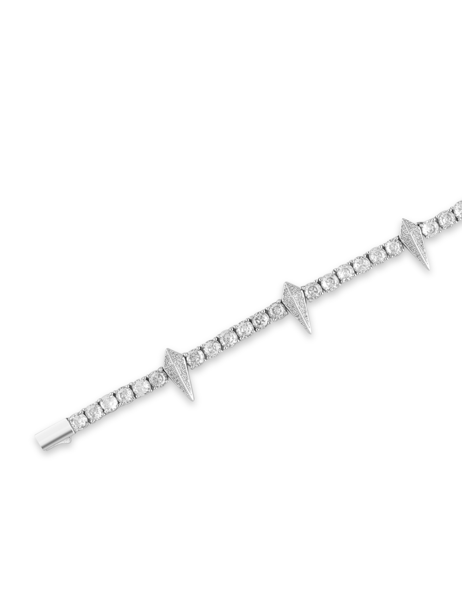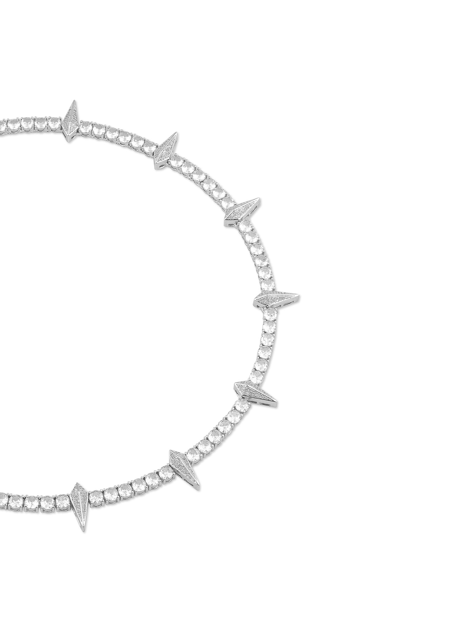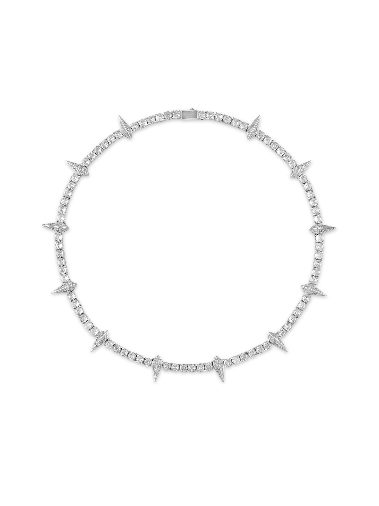 The GLINTFANG necklace fuses sharp geometry with refined brilliance. The full-length chain is set with high-grade zirconia stones that catch the light from every angle. while evenly spaced spike accents evoke a sense of controlled danger—like a modern relic forged in chrome. Available in two lengths. it delivers sleek aggression with sculptural elegance. Built to resist rust. oxidation. and wear. this piece requires no maintenance and never fades.