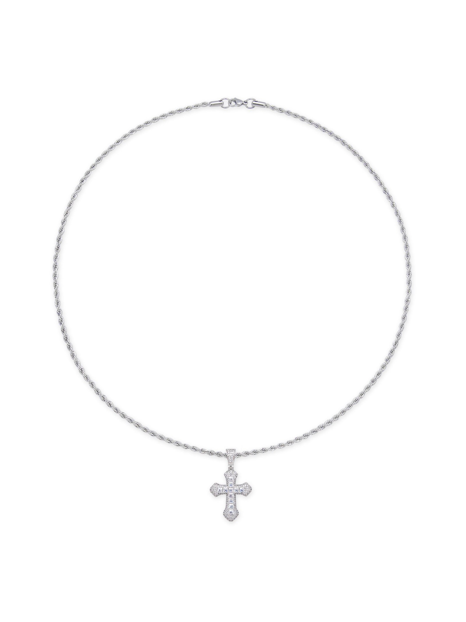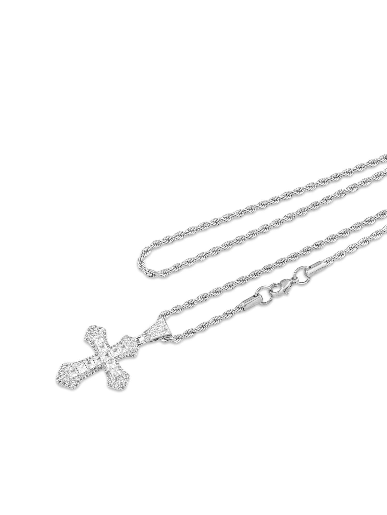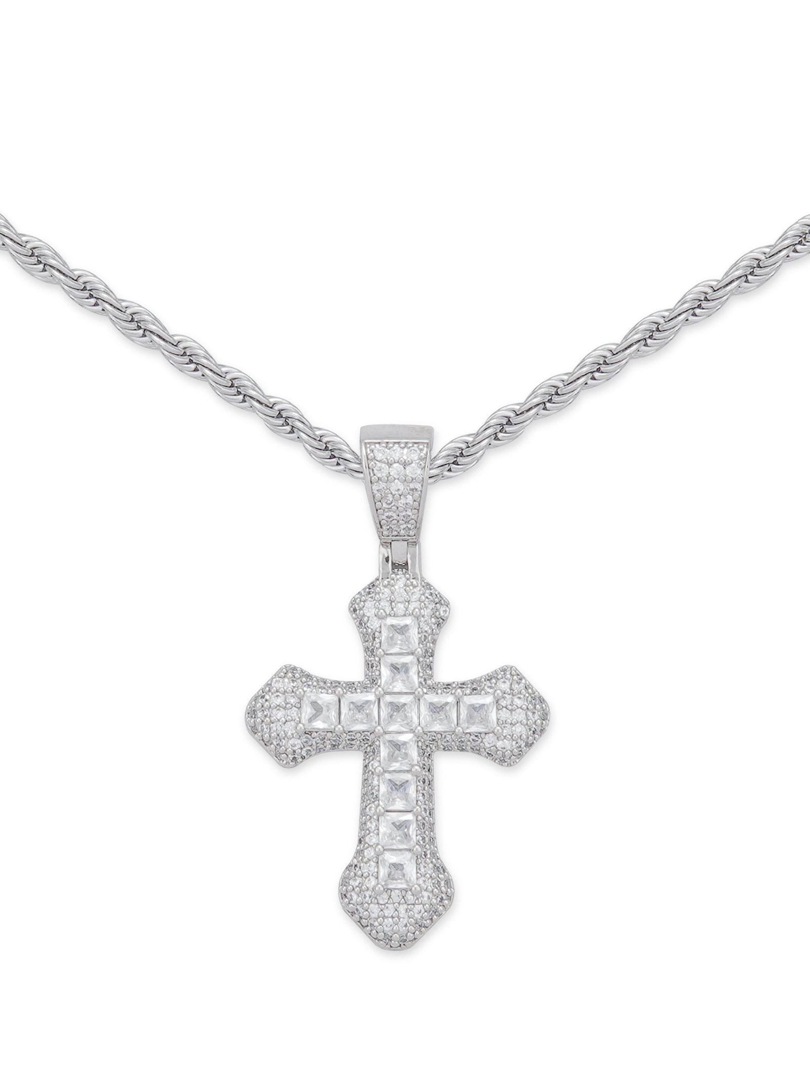 This bold pendant features a striking cross design and is set with sparkling zircons. The zircons exude a luxurious diamond-like luster. giving the piece a brilliant. high-end look. while the strong and durable metal ensures it will stand the test of time. It is resistant to rust. oxidation and daily wear. making it durable and maintenance-free.